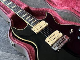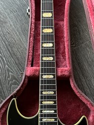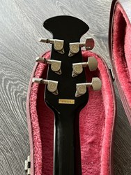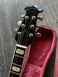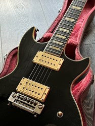 This is a true cult guitar, made famous by Josh from Queens of the Stone age.This is an original one from the mid 80's in very good and original condition. Mahogany solidbody, Set neck (blended heel) made of mahogany; rosewood fretboard with block or pearloid inlays; about 22 frets, 24.75 sale, 43mm nut, Two DiMarzio Super 2 (DP-104). Sounds and plays wonderfull. Has some finish stress cracks on some spots. (see pics). Comes in a hardcase.