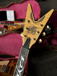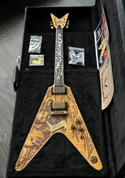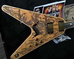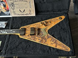 Here is a real treat for Schenker, The Scorpions and Dean USA collectors. A limited run of Schenker Brothers Flying V and only a few made in natural finish. This is nr 11 of 200 and is in excellent condition , just a bit paint wear where the neck meets the body. Comes with certificate and original case. Handsigned on the back of the headstock by both brothers.