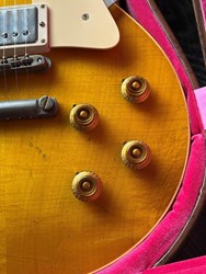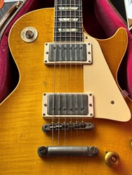 This is a stunning 2023 1958 Heavy Aging Murphy Lab with papers and Lifton case. The top has a nice light flame in it. The 1958 Les Paul™ Standard Reissue features all the painstaking historic construction methods of the famous '59 Reissues with a few historically-accurate spec differences that allow it to stand on its own. Like the 1958 originals, it has narrow frets which help more of the fingerboard wood to be heard in the tone profile. It also has a round, chunky neck profile for a full feel and maximum bending leverage. And finally it has a beautiful plain maple top; each is unique and full of character. It also features Heavy Aging by the skilled artisans of the Murphy Lab. The Murphy Lab Heavy Aged finish treatment, paired with heavily aged hardware, simulates decades of heavy play wear, giving it the unique character, vibe, and feel of an original example from the Gibson Golden Era. Weight is 4kg.
