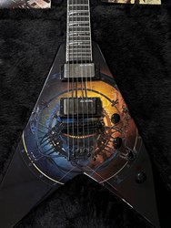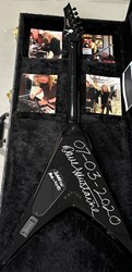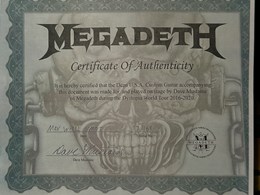 This is a Dave Mustaine of Megadeth owned, played, toured & signed Dean USA Custom. He signed it on the back in 2020 and wrote that he played it between 2016 and 2020. This is a high end Dean USA Max Wheel VMNT, not a Korean Dean. It comes with a certificate where Dave Mustaine himself also states he used it on the Dystopia World Tour 2016-2020. The guitar comes in the original case with a set of pictures of Dave holding the guitar and certificate. Great collectable, museum piece, mancave art piece, investment, guitar to actually play on :-). This great piece has many purposes.