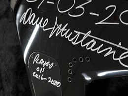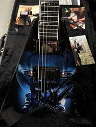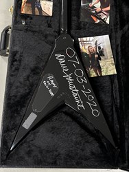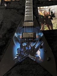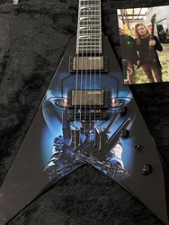 This is a Dave Mustaine of Megadeth owned, played, toured & signed Dean USA Custom. He signed it on the back in 2020 and wrote that he played it between 2016 and 2020. This is a high-end Dean USA Terminated VMNT, not a Korean Dean. It comes with a certificate where Dave Mustaine himself also states he used it on the Dystopia World Tour 2016-2020. The guitar comes in the original case with a set of pictures of Dave holding the guitar and certificate. There is playwear on front and back. Great collectable, museum piece, mancave art piece, investment, guitar to actually play on :-). This great piece has many purposes.