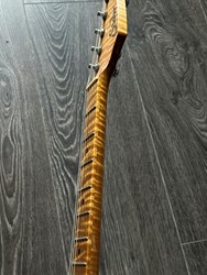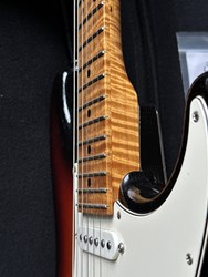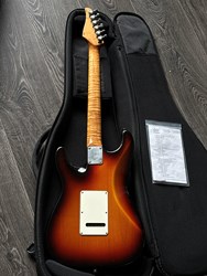 This beautiful Suhr Classic S Antique features a stunning roasted flamed maple neck. Take a look at the pics, one of the nicest necks ever!. It has an Alder body, 60's C shape neck, 9-12'' radius, ML pickups, SSCII, Locking tuners and Gotoh 510 bridge offer superior tuning stability. This Classic S has an aged Sunburst finish and contrasts nicely with the parchment pickguard. Including deluxe gig bag, tools and specsheet.