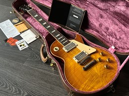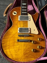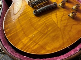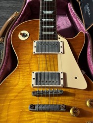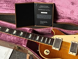 Here is a beautiful 1958 R8 VOS from 2018. It has the right specs like long neck tenon, Vintage CTS potentiometers, fat 58 profile neck, bumble bee capacitors, nitro finish, Lemon finish and Custombucker PAF replica's. The COA, tags and original case are included. The guitar has some finishwear, but no repairs or cracks. Weight is 3,9kg.