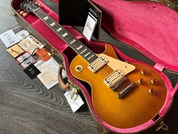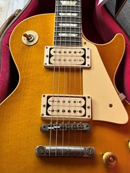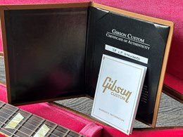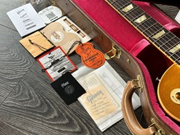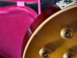 The neck profile is the chunky ’50s “C” style, giving a full, comfortable feel. Frets are narrow-tall (historic style) and are Plek-machine leveled for enhanced playability. Electronics are true to form: two Custombucker Double Whites (unpotted) deliver rich, vintage-style tones with clarity and resonance. Hardware includes vintage-style Kluson tuners, an ABR-1 bridge with a lightweight aluminum stop tailpiece, and other historically correct appointments throughout.