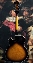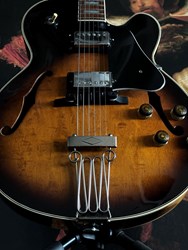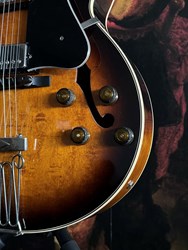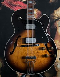 Excellent and original FG100. High-end Japanese built hollowbody. The FG100 features a full-sized, full-hollow, single Venetian cutaway body design with an arched, laminated maple top with ƒ holes and ivory multi-binding on maple sides and arched back mated to a set-in maple neck with a 20-fret rosewood fingerboard with ivory binding and pearl block position markers. Components include a pair of Ibanez Super 58 with chrome covers and individual volume and tone controls, black plastic pickup rings, a rosewood bridge with rosewood saddle, a custom trapeze tailpiece, a bone nut, Sure Grip knobs, and Smooth Tuner machine heads.