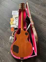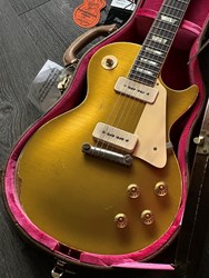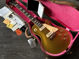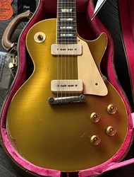 Here is an excellent condition 2022 Heavy Aged 1954 Murphy Lab. From Freddie King to Jeff Beck, many great pickers have been attracted the unique character of the "wraparound" tailpiece of a 1954 Les Paul Goldtop. Some believe its direct link to the body stud screws maximizes sustain while others believe the wraparound bar creates a distinct tonality and vocal quality. Whatever the case, there is certainly something special about this early year in the Les Paul Model's history and Gibson Custom Shop created this '54 Reissue to perfectly recapture the look, feel, and tone of the originals.