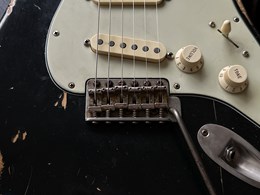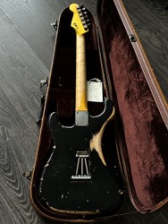 Here is an cool looking Nash S63 with an Alder body and Lollar pickups. Such a great vintage feel and sound in these handbuilt in USA guitars. Lollar pickups, 10'' radius. The S Model guitars are not only classic but versatile as well. While paying homage to the near perfect original design, they incorporated a few changes to update both playability and sound. This guitar once has P90 pickups, so there is a routing for bigger pickups under the pickguard. The weight is 3,5kg. Comes with specsheet and original case.