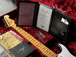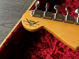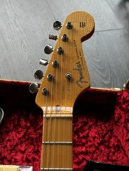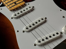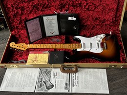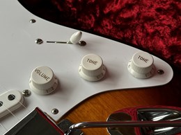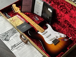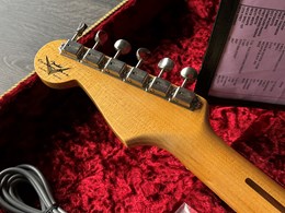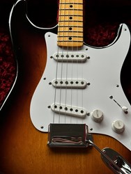 For pickups, it has three Custom Shop hand-wound ’54 single-coils, delivering sparkling, bell-like highs, sweet mids, and balanced lows typical of vintage Strats. The electronics are routed via a vintage-style wiring harness, using a 5-way selector and classic control layout: master volume, two tone knobs.