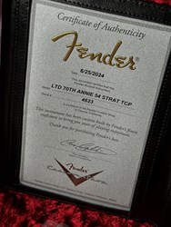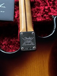 The body is made from two-piece select ash with an offset seam on the treble side, which contributes to a resonant, airy tone — just like the earliest Strats. The neck is quartersawn maple, fashioned in a special Soft “V” profile designed for the 70th anniversary, based on a genuine July 1954 Strat neck.