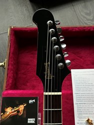 Tonally, it is equipped with two Firebird mini-humbucker pickups, providing the signature bright, snappy Firebird sound with clear highs, smooth mids, and strong articulation. Electronics include two volume and two tone controls, plus a three-way toggle switch to select pickup combinations.