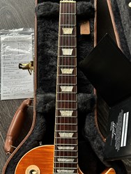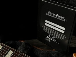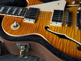 Here is a wonderful looking and excellent condition ES LP, built in Memphis, the perfect marriage of Les Paul and ES-335 yields powerful tones and a lightweight playing feel, 3-ply Maple/Poplar/Maple construction for top, back, rim with a figured top, 1-piece mahogany neck with "C" profile, rosewood fingerboard, bone nut, PAF-style MHS pickups, historic details and more. This one has a 1 piece flamed maple top with the Sunburst finish which looks great. Comes with checklist and original case. The weight is 2,7kg.