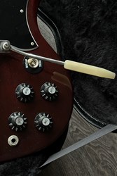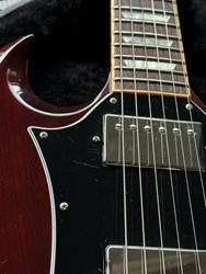 Here is a great limited run 2008 Angus Young SG. Starting out with a magnificent slab of hand-selected Mahogany for the body, Gibson’s luthiers then chose the perfect slice of Mahogany for the neck, and proceeded from there to create the ultimate raw energy rock machine. A ’57 Classic humbucker in the neck position and the exclusive Angus Signature humbucker at the bridge combine with the premium timbers to deliver all the crunch, all the driving power and fat, meaty attack that Angus and AC/DC are famous for, the world over. Excellent condition, has some very light finishwear, no cracks or repairs. The checklist and original case are included.