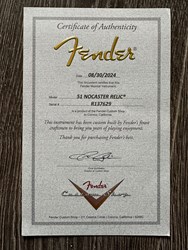 The body is made from lightweight ash, featuring a thin nitrocellulose lacquer finish that has been expertly relic’d to replicate decades of natural wear. The quartersawn maple neck has a classic early-’50s U-shape profile, offering a substantial vintage feel while remaining comfortable and responsive. The fingerboard radius and fret choice retain the authentic early-Fender character, giving the guitar the unmistakable feel of a genuine 1951 instrument.