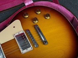 The neck profile is the chunky ’50s “C” style, giving a full, comfortable feel. Frets are narrow-tall (historic style) and are Plek-machine leveled for enhanced playability. Electronics are true to form: two Custombucker Double Whites (unpotted) deliver rich, vintage-style tones with clarity and resonance. Hardware includes vintage-style Kluson tuners, an ABR-1 bridge with a lightweight aluminum stop tailpiece, and other historically correct appointments throughout.