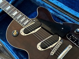 The 2372 features a single cutaway solid body with contoured top with natural mahogany finish bolted to a mahogany detachable neck with a 22-frets rosewood fingerboard with fancy pearloid position markers, white bound edges and a black side dots. Components includes a Tune-o-matic style fixed bridge with a stop tailpiece, a pair of King Tone low impedance singel coil pick ups, a white pickguard, individual chrome plated machine heads.