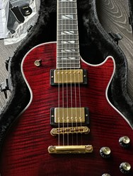 This is a 2023 light used Gibson LP Supreme in classy Winered with a beautiful flametop. Complete with all papers, strap and original case.