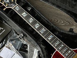 Gibson has created a top-tier instrument that pairs high-performance features with dazzling aesthetics. An AAA figured maple top (plain maple on the 3-pickup Gibson exclusive model) crowns a mahogany body with Ultra-Modern Weight Relief for striking visual appeal along with a lighter feel. All that classic Les Paul warmth and sustain remain intact, enhanced by a touch of modern comfort. The mahogany neck has an ebony fretboard with a compound radius and Super Split Block mother-of-pearl inlays, along with a Modern Contoured Heel for exceptional upper-fret access. The headstock is adorned with a striking new mother-of-pearl inlay inspired by a design from the 1940s that was discovered in the Gibson archives. Burstbucker™ Pro and Burstbucker Pro + pickups are paired with push/pull Volume and Tone potentiometers for flexible coil tap, phase, and Pure Bypass switching (individual push/pull volume controls for flexible coil tap switching and a Master Tone control on the 3-pickup model). This setup suits everything from warm, PAF-style tones to more aggressive rock sounds. The gorgeous finishes are elegantly highlighted with gold hardware, making this not only a great-sounding and highly flexible instrument but also an exceptionally beautiful-looking modern rock machine. A hardshell case is also included. With premium tonewoods, adaptable electronics, and refined appointments, the Les Paul Supreme redefines the concept of a “flagship” guitar. It exemplifies Gibson’s dedication to pushing design boundaries while preserving the heritage that has made the Les Paul an inimitable icon. For those seeking a no-compromise instrument that excels in look, feel, and sound, the Les Paul Supreme stands at the pinnacle of modern Gibson craftsmanship.