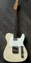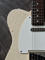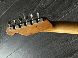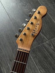 Here is a handbuilt in Holland Haar Guitar. Erik vd Haar is pretty famous by now and his guitars are high level tone machines. All handbuilt and the finest woods and parts are used. This is a Tele model from the early Haar days with the Fender style headstock and with a maple neck, c shaped neck profile, 9-11'' compound radius, Ash body, nitro blonde finish, Seymour Duncan bridgepickup and Lollar neck pickup, etc etc. Great tone. Very high quality feeling guitar and sounds and plays great. This is a good one. Weight is just 3kg. Comes in a gigbag.