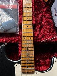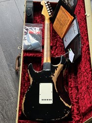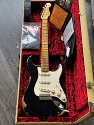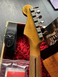 This is an exceptional sounding Strat with some great specs like handwound 57 pickups, 9.5 radius, 57 soft v shape neck, alder body and a very nice heavy relic job. 2019 guitar with all candy, papers and original case. Only played a few times and in mint condition, weight is 3,5kg and comes in the original case.