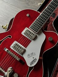 Equipped with dual Filter’Tron-style pickups, the guitar delivers clear, chimey highs, tight lows and that signature Gretsch sparkle — perfect for rockabilly, country, jazz, blues and vintage-inspired rock. The traditional control layout includes individual pickup volumes, master volume and a tone switch, giving you plenty of tonal flexibility.