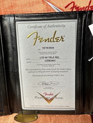 This is a beautiful 2024 Tele Relic and it's a 1960 Tele in Sherwood Green with a lightly flamed quartersawn maple neck. It's is Custom Shop instrument with classic vintage style and modern playability. Built to premium event-spec standards, it features a beautifully aged-relic finish, giving it the look and feel of a well-loved early-’60s Telecaster.