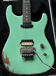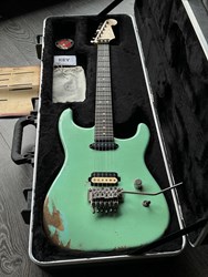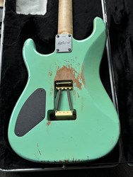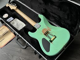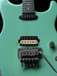 This is a mint condition 2022 Luxxtone El Machete rockmachine, Alder body, quartersawn maple neck, Luxxtonebucker Hot, Hippy Whip neck pickup, German Floyd Rose, Hipshot tuners, Surf green finish Aged. These are superbly built by Jerry Bizon in Southern California using the best Woods and components. The Ultimate SuperStrat, these are some of the best built superstrat guitars. Comes with COA & SKB Case. The weight is 3,7kg.