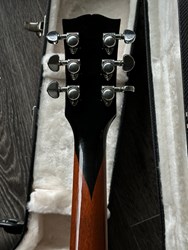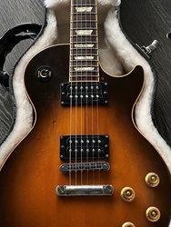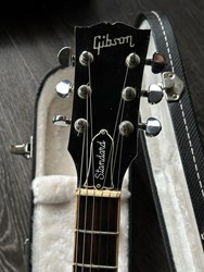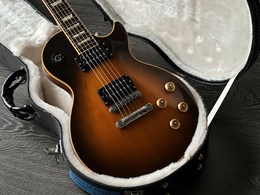 Here is good one from the populair 90s era, an 1990 Les Paul Standard in the wanted Tobacco finish. The old woods really help the tone, sweet vintage familair LP sound. The guitar is all solid mahogany and maple top, 490 and 498 pafs, medium profile neck, very comfortable. The original tuners were replaced for Grovers. The pickup covers are gone. The guitar had a headcrack repair and the headstock was refinished in black with a stinger (the serialnumber is still readable). The weight is 4,5kg. An original Gibson case is included.