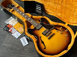 This is a 2025 guitar with just 1 owner who only played it a few times. Mint ondition. The Historic Reissue ES-335 is back and better than ever thanks to a year of studying, scanning, and listening to original examples. The expert craftspeople at Gibson Custom Shop have rendered every contour, profile, inlay and color of the priceless vintage models in magnificent detail. The result is a playing and ownership experience that will keep you coming back for more. The 1964 Reissue models utilize sharp horn cutaways, medium C-shape neck profiles scanned from originals, small block inlays and vintage-replica parts.