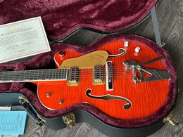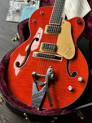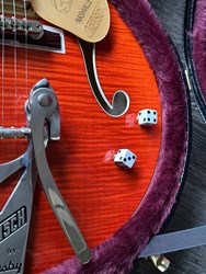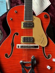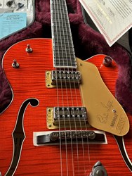 Gretsch® is thrilled to be a part of Setzer's pivotal legacy with the G6120TFM Brian Setzer Signature Nashville® Hollow Body with Bigsby® and Flame Maple, a truly rocking instrument that boasts as much swagger as the showman who inspired it.