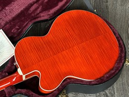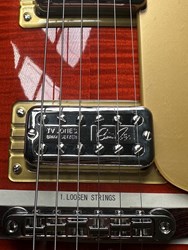 The single-cutaway hollow body features tiger flame maple arched top, back and sides with 1959 trestle bracing and oversized F-holes for improved sonic projection. The set maple neck has a 9.5"-12" compound radius ebony fingerboard with rolled edges for comfortable chording or speedy riffing across 22 medium frets and pearloid Neo-Classic™ thumbnail inlays. Dual TV Jones® Brian Setzer Signature Filter'Tron™ pickups deliver tight and punchy lows with a slightly hotter output that captures Brian's iconic lively tone.