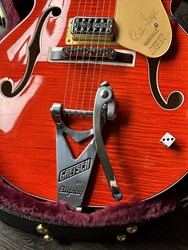 Other performance-enhancing features include period-correct control locations with a three-position pickup toggle switch, three-position tone switch, master volume control with treble bleed circuit and individual bridge and neck pickup volume controls, Adjusto-Matic™ bridge with pinned rosewood base, Bigsby® B6C vibrato tailpiece, Delrin® nut and Gotoh® locking tuning machines.
