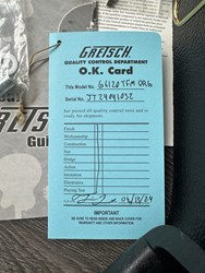 This is an unplayed guitar from a collection. Year is 2024. By spearheading the rockabilly revival with the Stray Cats and jump-starting Big Band Swing with the Brian Setzer Orchestra, Brian Setzer has created a remarkable and lasting legacy. His decorated career includes over 13 million records sold, three Grammy Awards and the Orville H. Gibson Lifetime Achievement Award in honor of his work as a guitarist. Without a doubt, the longtime signature Gretsch artist is one of the most exciting musicians of our time.