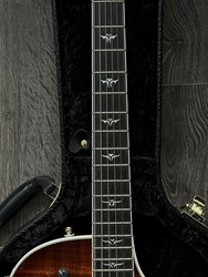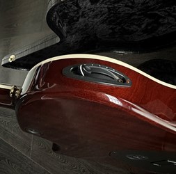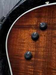 Stunning flamed Koa top in this versatile Taylor T5 Custom. The Taylor T5 offers an amazing blend of acoustic tones and electric playability. This T5 Custom model has a gorgeous AA Koa top with a Sapele body and Taylor's beautiful Shaded Edgeburst finish, giving beautiful aesthetics to match the pristine sound. The guitar produces the ultimate blend of acoustic and electric functionality and tonality with five-way switching, onboard tone controls, and dual compatibility with electric and acoustic amps. With an acoustic body sensor, concealed neck humbucker, and visible bridge humbucker, you have an instrument at your disposal that offers a great variety of electric and acoustic tones. This guitar is in very good condition, but has some wear on the top in the finish near the upper tone control. The weight is a comfortable 2,7kg. Comes in the original case.