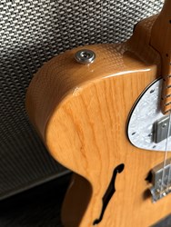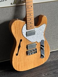 Oh yes this is a good one, a classic design Thinline, but built by Suhr with modern appointments and premium woods. 2 Thornbucker PAFs with 5 way blade switch creating many sweet tones, Swamp ash body, very smooth satin maple neck, easy axcess neck heel, Suhr locking tuners. Excellent condition, just a finish ding on the topedge. Weight is 3,1kg. Comes in the Suhr bag.