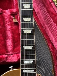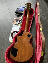 Here is a lovely 2021 LP Standard. The new Les Paul Standard returns to the classic design that made it famous. It pays tribute to Gibson's Golden Era of innovation and brings authenticity back to life. The Les Paul Standard '50s has a solid mahogany body with maple top and a rounded 50's-style mahogany neck with a rosewood fingerboard and trapezoid inlays. It's equipped with an ABR-1, the classic-style Tune-O-Matic bridge, aluminum stop bar tailpiece, vintage deluxe tuners with keystone buttons, and aged gold top hat knobs. The classic PAF pickups (neck and bridge) are loaded with Alnico magnets, audio taper potentiometers and orange drop capacitors. Has some light finishwear, weight is 4,4kg. Comes with papers, candy and original case.