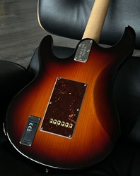 Here is a very versatile and wonderful playing and sounding Silhouette Special. The Silhouette Special features a stylish contoured alder body with a H-S-S pickup configuration. DiMarzio humbucker in the bridge position to still have that fat hubucker sound and custom wound DiMarzio single coil pickups in the neck and middle deliver a wide pallet of tonal options ranging from hard edge crunch to bright shimmering highs. The Silhouette Special also features a comfortable "C' shape maple neck with 22 frets and is equipped with Music Man's patented Silent Circuit for a hum-free single coil experience. The guitar has some light scratches, but overall in very good condition. Comes in a non original case.