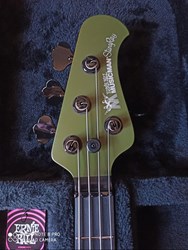 This limited-edition Tim Commerford Artist Series StingRay Bass in Xavier Green, developed in collaboration with legendary bassist Tim Commerford of Rage Against the Machine, Audioslave, and 7D7D, celebrates his long-standing connection with Ernie Ball Music Man. With only 50 units available, each featuring a numbered custom neck plate, this bass combines an ash body, roasted maple neck, and ebony fretboard for rich, balanced tone. Equipped with a neodymium Music Man humbucker, 18-volt preamp, and 3-band EQ, it offers impressive tonal versatility, while the string-through-body bridge with a mute kit enhances sustain and control. Black hardware and a custom, height-adjustable “finger ramp” thumb rest – inspired by Commerford’s playing style – add functionality and comfort.