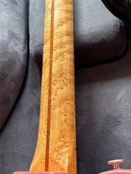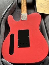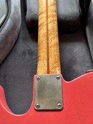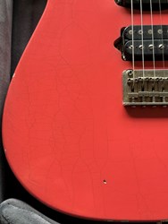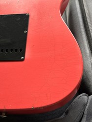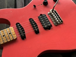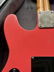 Erik vd Haar is pretty famous by now and his guitars are high level tone machines. All handbuilt and the finest woods and parts are used. The specs are rosewood fretboard, c shaped neck profile, Paulownia body, nitro Aged finish, 9-12 compound radius, A,ber pickups, push/pul pot for coilsplit, stanless steel frets, birdseye maple neck. Very high quality feeling guitar and sounds and plays great. The finish is Fiesta Red. The weight is 2,9kg.