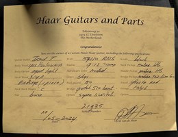 Here is a handbuilt Haar Guitar. This is a custom order with some unique specs.Very comfortable and versatile guitar from 2024 with COA & Haar bag.