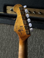 This is a new guitar. A collaboration between Kauffmann and RJVGuitars, we are both big fans of the original John Mayer Black1 and i came up with the idea to make a limited run of 10 guitars inspired by this legendary, rare and valuable guitar. This is serial# 8 of 10.