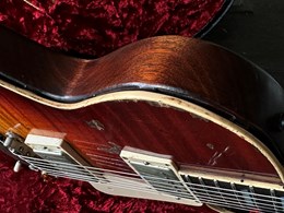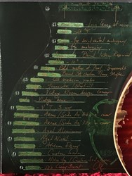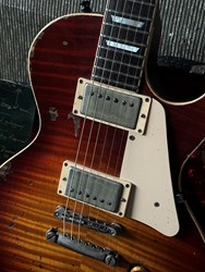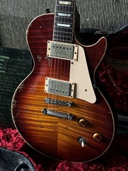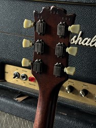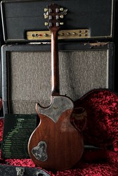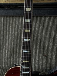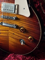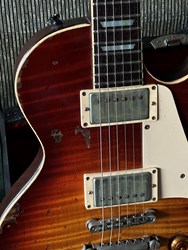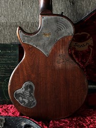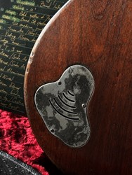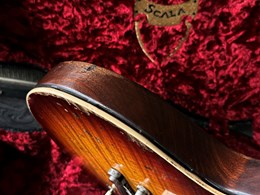 These are one of the hottest tickets in the guitarworld these days, The Scala Underdog, this is a very cool piece of craftsmanship from LA, USA. Leo Scala is such a skilled artist, the details, materials and designs are next level. This is his semi-hollow Underdog, a Les Paul inspired guitar but take a look at the pictures how much work he puts in his guitars. It is so beautifully made. It has a mahogany body with a flamed maple top, very resonant guitar. As played by Richard Fortus and Doug Aldrich. The guitar is in excellent condition with certificate and original case.