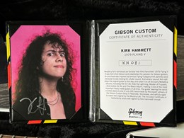 Metallica fans worldwide are familiar with Kirk Hammett’s 1979 Flying V. It was Kirk’s first Gibson and established his passion for Gibson guitars. Its purchase was inspired by famous Flying V™ players Kirk admired and because he was looking for a fuller sound. And what a sound! Kirk still plays the original guitar to this day, and used it on all the early Metallica albums, including Kill ‘Em All, Ride the Lightning, Master of Puppets, …And Justice for All, and The Black Album, making it one of the most important heavy metal guitars of all time. Only 200 were hand-made by the expert luthiers of the Gibson Custom Shop in Nashville, Tennessee, artfully aged to match the original by the Murphy Lab. The included Certificate of Authenticity photo is signed by Kirk Hammett himself.