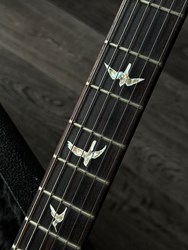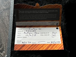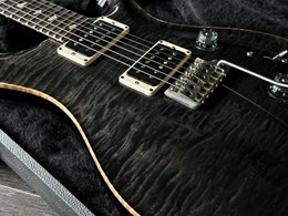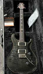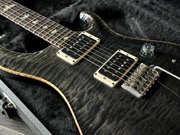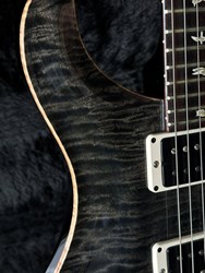 This is a beautiful 2015 PRS Custom 24 with wild flametop in the well loved greyblack finish. It also has colorful birds, rosewood headstock overlay, Pattern thin neck, 85/15 TM pickups, 5 way bladeswitch. Very versatile guitar, from sparkly cleans, to bluesy crunch to heavier rock, this one does it all in a comfortable playing and elegant looking package. Excellent condition, just a small finishmark on the back (see pic). Comes with papers and original case.