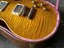 This is a beautiful 1959 60th Anniversary Burst from 2019 with a serious Greeny vibe. The finish, the flame, it has a famous look ;-). A very accurate version of the 1959 Burst. Laser scanned top carve, chemically correct plastic parts etc etc, this is one for the true Burstnerds. Comes with COA, checklist, tags, extra toggleswitch controlplate and original case.