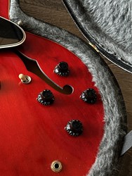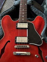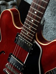 This is an ES-335 Satin. It has and unbound fretboard like the original 1958 version and it has a satin finish which feels smooth en looks great.