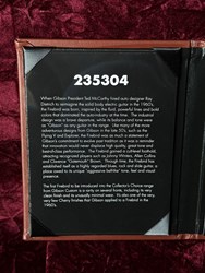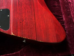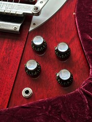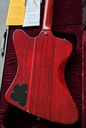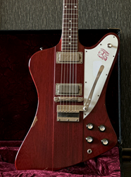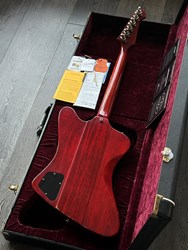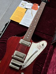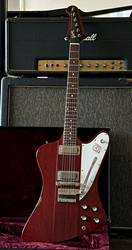 This is a "rare bird" ;-). A Gibson Firebird 64 Collectors Choice CC47. In 2017 the Gibson Custom Shop released this exact replica of a Firebird III from 1964 with the serial number #235304, reverse body and Cherry finish in a limited edition of 300 specimens, using laser scans and precise studies of materials and finish to replicate the original in the most meticulous detail. Originally introduced in 1960, the Firebird was designed by the legendary Ted McCarty borrowing from automotive design with features that were extremely daring at the time. Over the years it has been played by numerous Blues, Rock and Slide players such as Johnny Winter, Allen Collins and Clarence "Gatemouth" Brown, who made music history with this instrument. The CC47 is unique in many ways in that, compared to most other CC models, it comes with a more subtle aging and for Firebirds a rather rare Cherry finish. Matching this is the chrome-colored, artfully aged hardware, which gives the guitar a great vintage look. Handwound "Custom Firebird Mini Humbuckers" are used as pickups, which provide its characteristic, slightly nasal "bell-like" tone. The fantastic overall package is rounded off by a smooth-running Maestro vibrola and the extremely comfortable, medium-strength "Firebird Custom" neck. All in all, an absolute top player with a highly authentic vintage look, a very unique sound, for which Firebirds have been loved for more than 60 years, and the best value retention! Weight is 3,6kg and comes with original papers and case.