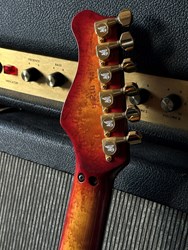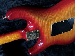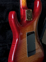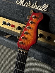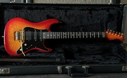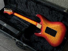 Here is an early handbuilt original Valley Arts. Serial# VA 01256. This a great find i just discovered with 2 other early Valley Arts guitars on the attic of a local collector. This one wasn't played much and is in exceptional clean collectors condition and has a flamed maple body and a highly figured birdseye maple neck. These are such great guitars pretty collectable and getting more and more valuable. HSS configuration, EMG pick-ups, gold hardware, ebony fretboard, this is a great playing and fat sounding very versatile guitar. Comes in it's original case.