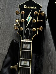 This is a high-end Ibanez PM120, the highly regarded Pat Metheny signature model, built in Japan by FujiGen. This instrument combines traditional jazz tone with a slimmer, more modern hollowbody design, making it exceptionally comfortable and versatile.
