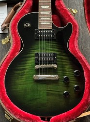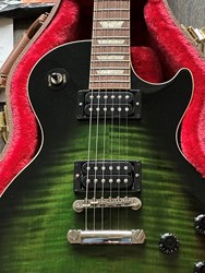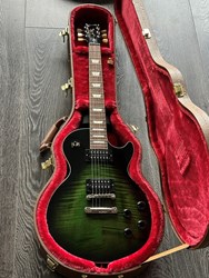 Featuring a solid mahogany body with a carved AAA flamed maple top, this guitar delivers the legendary sustain, warmth, and midrange punch that defines the Les Paul sound. The unique green Anaconda Burst finish sets it apart visually, fading from vibrant green to deep black for a bold, unmistakable appearance.