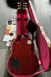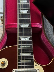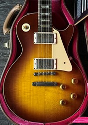This model is a high-end re-creation of the original 1958 Les Paul Standard. It features premium tonewoods and historic-accurate construction methods. The body is solid mahogany with a two-piece plain maple top. The neck is also mahogany, fitted with an Indian rosewood fingerboard. The finish is nitrocellulose lacquer with a VOS (“Vintage Original Spec”) treatment, meaning it’s lightly aged and buffed to a gently worn appearance rather than a high gloss new look.
